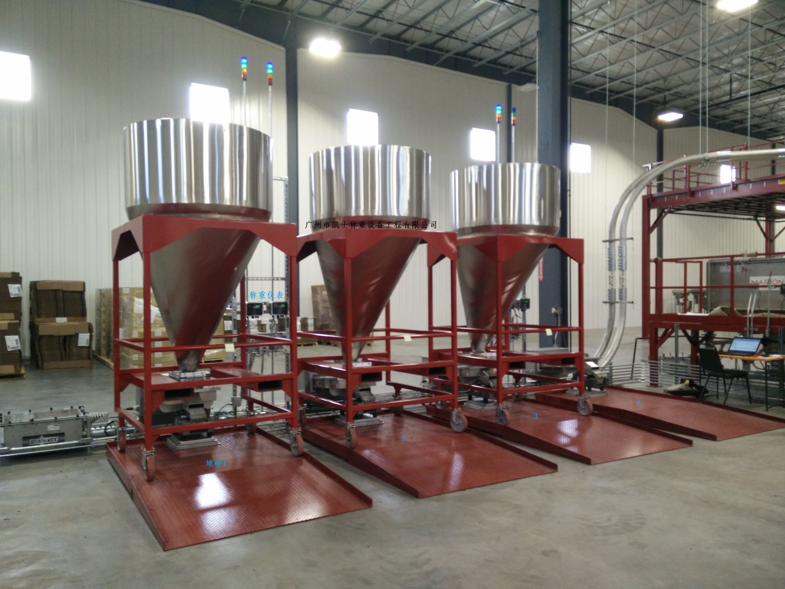 防侧载称重模块的核心部分为CPU,利用机架背板总线与安装于机架上的模块实现通讯,并在对硬件自检的前提下,进行模块安装检查和程序扫描,将I/O模块值进行存储和定期更新,通过模拟量模块对设备各模块进行轮询并不断对各通道进行更新,并在程序执行结束后直接将结果进行输入和输出,即使HMI发生故障也不会影响系统的正常运作。同时称重传感器具有对自身和周边系统联锁控制,对控制系统内部电机、各种给料机、挡板、料门、计量斗等构件运行状态控制,对状态传感器运行状态检测,对现场情况进行实时监督及随时报警,将系统的运行状态及时传输给上位机并接受上位机全程监督等功能。