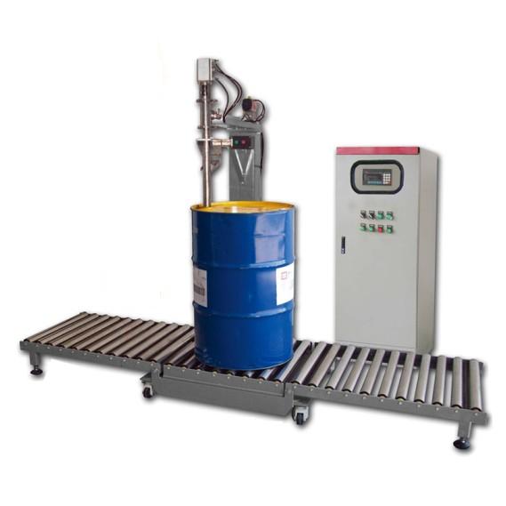 灌装系统由喷枪管道、喷嘴、气动球阀、气动底阀、回流阀、喷枪升降机构、电子秤接近开关、气源三联件、电磁阀、气缸、喷枪支架、旋转摇臂;目标量自由设定,适应多种重量范围的定量灌装;双窗口显示专用灌装控制仪表,定量灌装机可显示目标量、灌装量、桶数、累计量等信息。